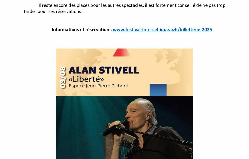CP FIL 2025 – 13 juin – Concert Alan Stivell dimanche 3 août COMPLET