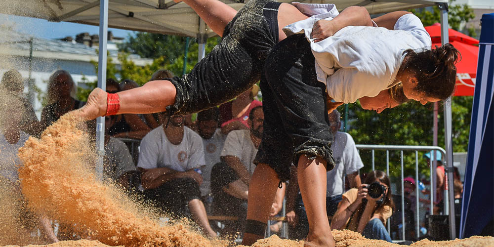 Le gouren est le nom breton de la lutte bretonne. Pour la dixième année consécutive, un tournoi international réunissant Bretons, irlandais et Asturiens était organisé à l’occasion du Festival. Ce sport venu des nations celtes nous est arrivé sans doute au Vème siècle après J.C. Il a gardé de cette époque son esprit chevaleresque, avec ce serment prononcé par les lutteurs. Les valeurs propres à cette discipline sont la loyauté, le respect