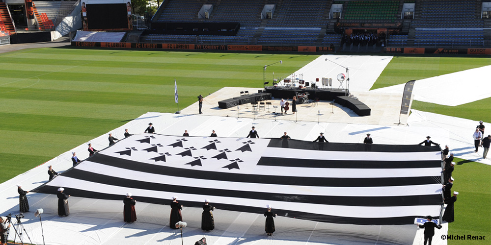 Au même moment, un immense drapeau breton, le Gwenn ha du a été déployé sur la pelouse, avec la collaboration des trois cercles de danse lorientais : Armor-Argoat, Brizeux et Bugalé an Oriant. Yvon Etienne sera l’animateur au micro de la soirée.